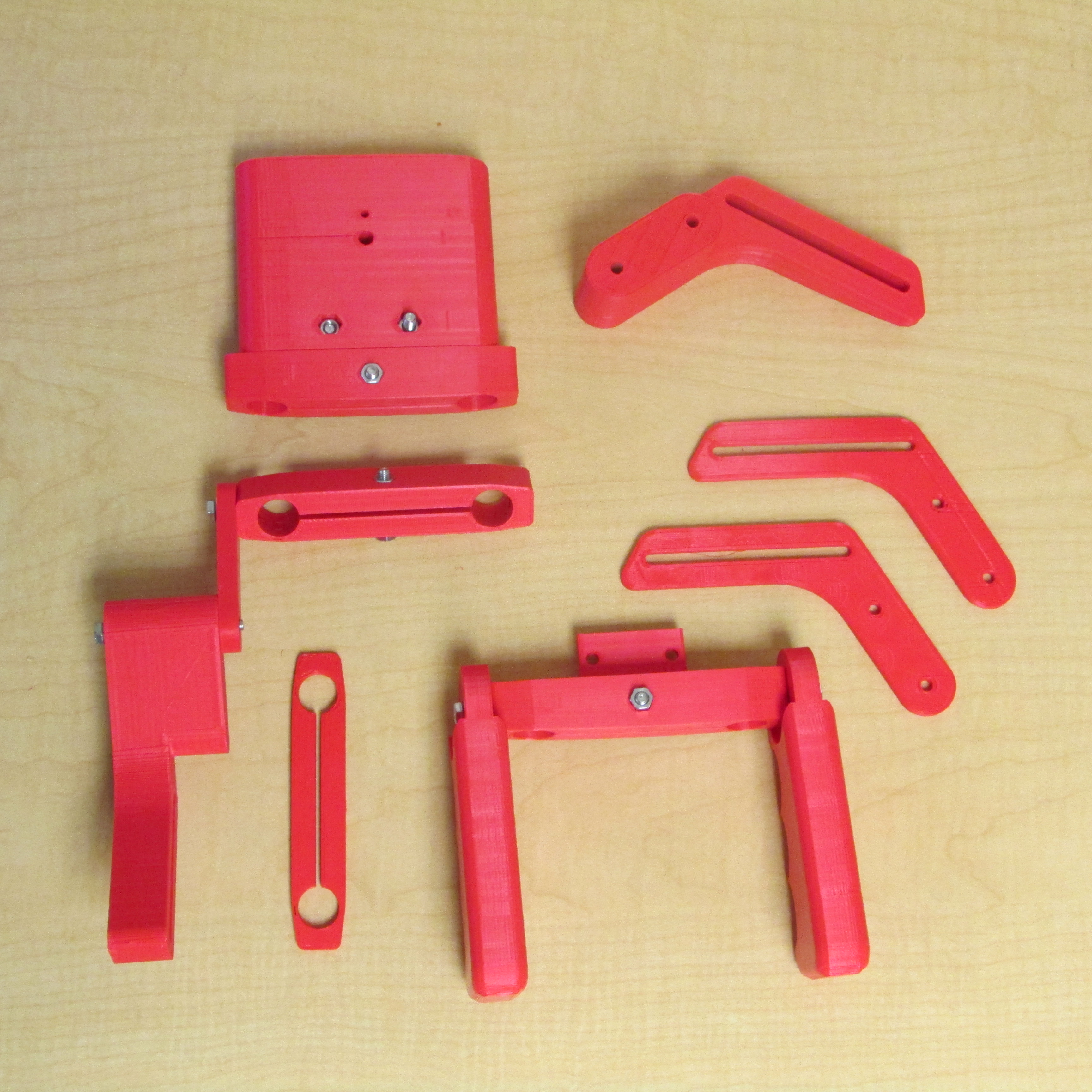The project itself is not terribly complex; In total, there are nine printed pieces. The printed pieces are held together by nine standard metric 5mm bolts (and an equivalent number of nuts and washers). Two fifteen millimeter aluminium rods run the length of the contraption. Fifteen millimeter rods are the film industry standard.