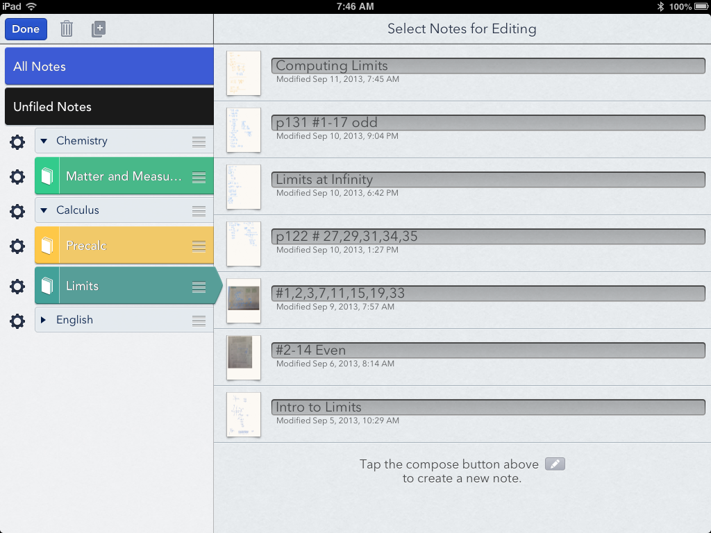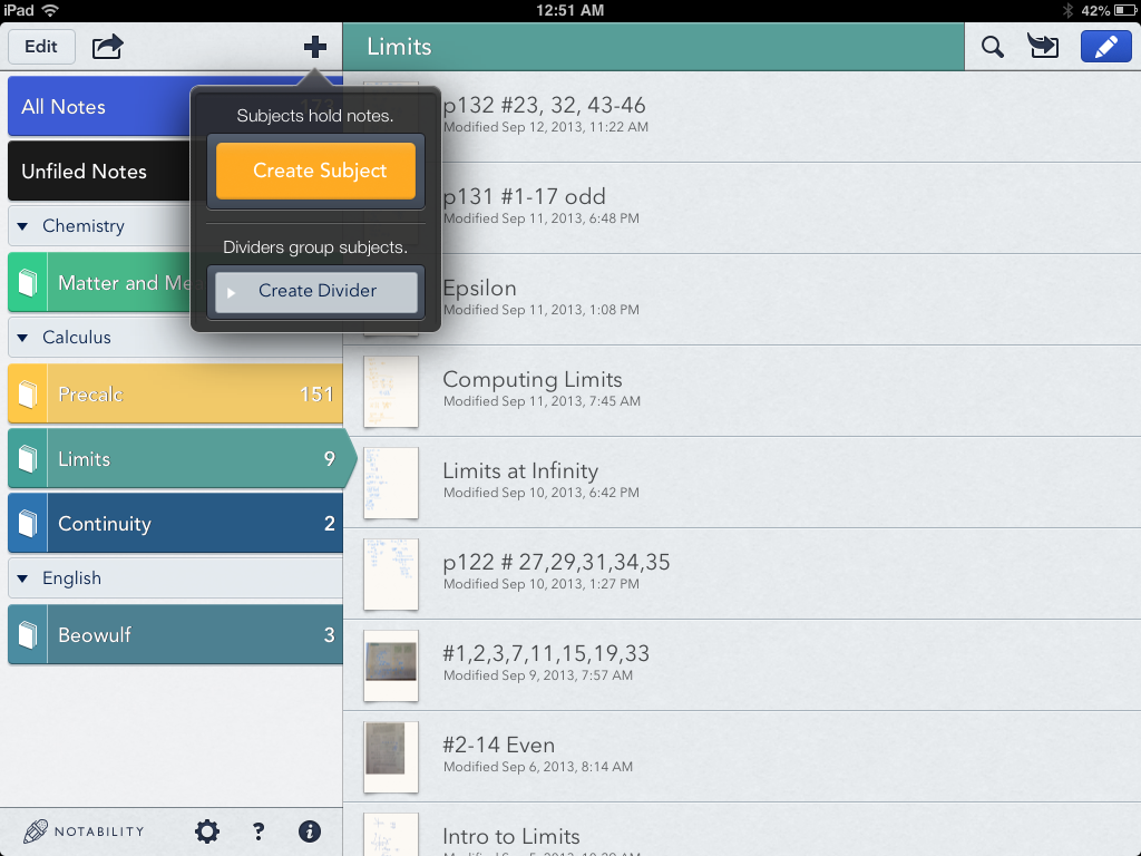 Notability has an effective system of organization. Dividers can be used to separate notes by class and subjects can be created within dividers for each topic within a class. There is also a search bar that can be used to locate notes by title or by the content within them. Notes can easily be moved between folders and renamed.