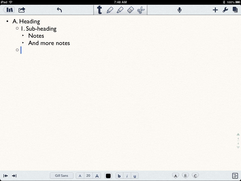 In addition, Notability has a note-taking mode that helps you take structured notes with bullet points, headings, sub-headings, sections, and sub-sections.