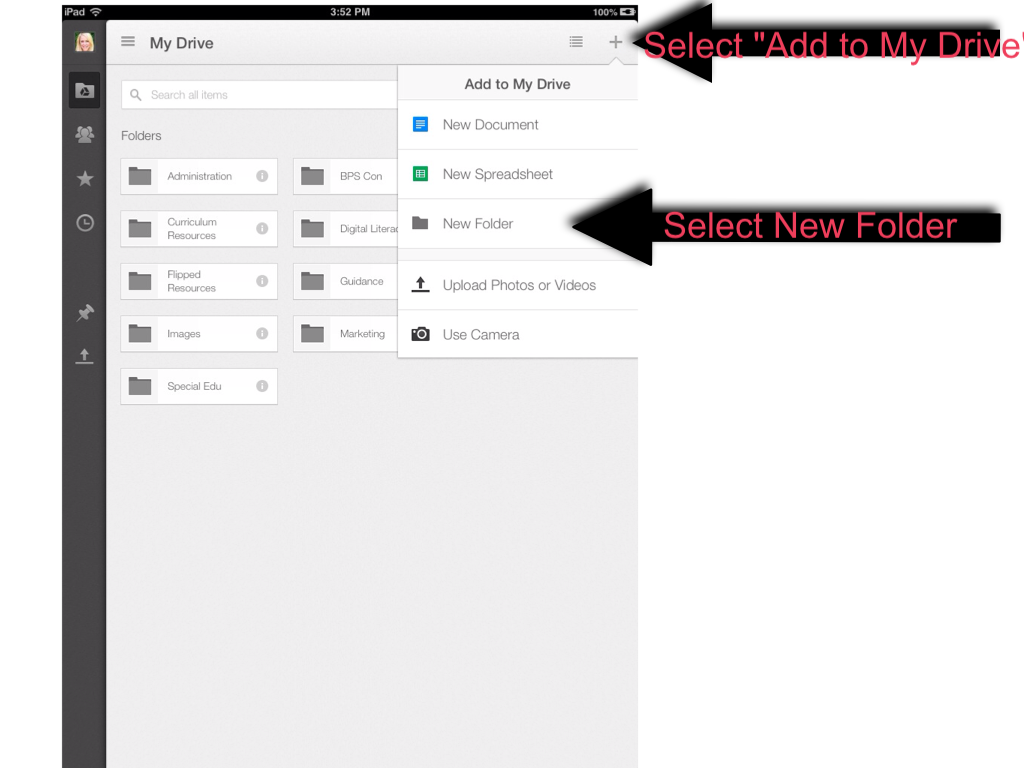 CREATING FOLDERS IN GOOGLE DRIVE FROM YOUR IPAD: