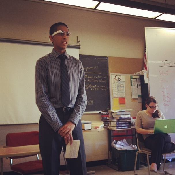 “The Google Glass are an innovative technological marvel, that certainly has some productive uses. I am honestly surprised at how little of a distraction the screen was. I was expecting the Google Glass to be nothing but a distraction, however, it had a fairly miniscule effect on my presentation. When I first saw the Google Glass I was like most people, I was skeptical. How would this be of use? Would this be too distracting to be used in any formal or intensive settings? However, I was proven wrong. The Google Glass certainly has its uses. It seems like it would be extremely useful for anyone who could benefit from recording their observations. It could be helpful for anything from giving a speech to conducting an experiment. However, Google Glass has more than just a video recorder. It has multiple functions and a unique control system to make it even more innovative. For example, one could call his/her friend from the Google Glass. This is something that everyone should research. Just search them up in GOOGLE! Seriously though, one does not have to be tech savvy to appreciate the use and innovation of the Google glass. The most surprising thing, however, was that it did not distract the user much. The screen can be so discrete that it can be used efficiently and productively in school. During the trial of the Mongols in my AP World class, I was able to say my closing statement with the glasses on. I was never distracted by them during my speech. This was a great experience, and is one that I cannot wait to relive.”