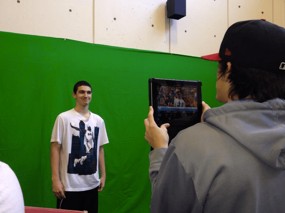 Ms. Desousa’s Spanish students taking advantage of the green screen
