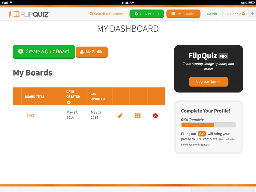 To edit your board just click the pencil icon. This will allow you to edit your board in the same fashion you created it with.