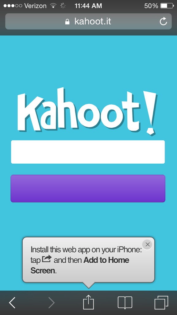 To play a Kahoot game, students will go to the website Kahoot.it and enter the pin number to join the game. It takes less than two minutes for students to join a game of Kahoot. Students can play from their iPads, Chromebooks, iPhones, or Android devices. This is the login screen that students will be directed to play the game.