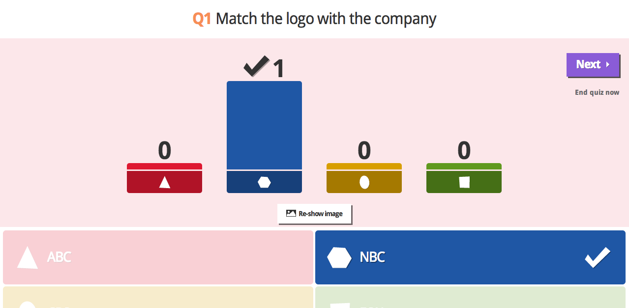 Teachers can also embed images into their questions. Below is an example of a question that was created using an image. Kahoot is also experimenting with allowing teachers to embed videos.