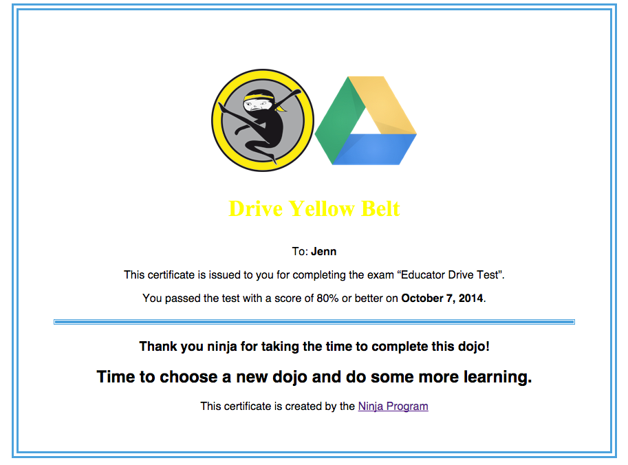 Jeff Utecht, an authorized Google Education Trainer, developed this free program as a way for students to learn how to use Google Apps for Education in a fun and social way. The self-paced lessons are based on the Google Educator Certification program and are designed for students in grades 6-12. Students are taken through a series of learning modules to help them master Gmail, Drive (Docs, Sheets, Slides, Drawings, Forms), Calendar, Sites, YouTube, Maps, and Google+. Each module ends with a test and gives students the chance to earn digital badges, or their “Ninja belts.” The culminating project requires students to develop a resource for the Ninja Program that will help teach the “future generation of ninjas.” Project submissions are reviewed by a team of Ninja Master’s and if it meets the requirements, students will receive their Ninja Master Certificate.