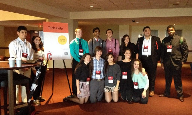 My first “face to face” meeting with Kerry and her students was via the student run demo slam held on October 16th. After we went off the air, Kerry and I talked about meeting up at MassCUE and making sure our students had the opportunity to connect face to face as well. We planned to meet in the “Tech Help” area on the Red Level East Wing of the stadium. The morning of the conference, as I made my way to the East Wing elevators, I heard some familiar voices, which turned out to be Julia and Megan, two of Kerry’s students who were in the demo slam. As I approached the girls, I could tell they instantly recognized me. A few steps behind them was Kerry. After a quick “in person” introduction (thanks to our Twitter connection it was like we already knew each other) we decided to gather the rest of our students for a group photo and then allow them time to socialize and network. Students discussed their programs, sent each other friend requests on Facebook, and talked about coming to visit BHS on November 20th. It was a tremendous confidence builder for students to meet other students who were interested in and passionate about technology. I’m hoping this was the first of many future in person and virtual collaborations not only with North Reading, but with other tech teams throughout Massachusetts and beyond. Several tech team instructors are currently talking about coordinating a student run Twitter chat and future demo slams. I also hope to connect our student tech teams at Edcamp Grafton on March 21st as well as the New England Student Showcase on April 10 & 11 (stay tuned for the link to register!).
