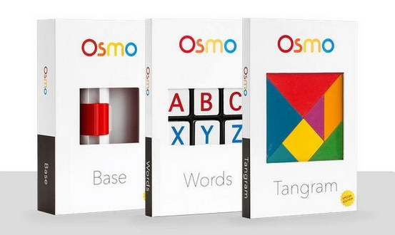 Osmo, a unique gaming accessory for the iPad, was created by Tangible Play, Inc. in 2014, and that is exactly what Osmo is. Osmo uses groundbreaking reflective artificial intelligence technology and is the epitome of tangible play, as it introduces kinesthetic learning opportunities for developing minds and closes the gap between the digital and physical worlds. A kinetic learner myself, I was immediately drawn to the presentation of this tool. In essence, the Osmo is a simple reflector that is placed on the iPad’s front camera, which projects the surface directly in front of the iPad to the camera. However, the impressive craftsmanship is exemplified by the seamless integration of tangible images projected and displayed to the iPad’s screen. The Osmo started kit comes with a base and reflector, Tangram and Words games pieces and three apps: Tangram, Newton, and Words. To access the the apps, users will launch Safari and navigate to www.playosmo.com/start.