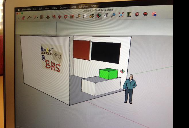 Currently, Cat and several of her Help Desk classmates are in the very early exploration and planning stages of a maker space at Burlington High School. My colleague and I, BHS Librarian Susan Disanto, will provide guidance along the way, but for the most part, the maker space will be entirely student run. Watching students design the space from scratch is going to be truly exciting. I know they will create a unique space and one which reflects the learning goals of the school community. They’ve been exploring existing maker spaces, developing our maker space philosophy and mission, designing the physical space, evaluating the types of tools and equipment needed, and brainstorming how to best promote the space once it is completed. Cat is designing a model of the space using Google Sketchup (a program she is teaching herself how to use) and her classmate Timmy Sullivan has created the maker space logo.